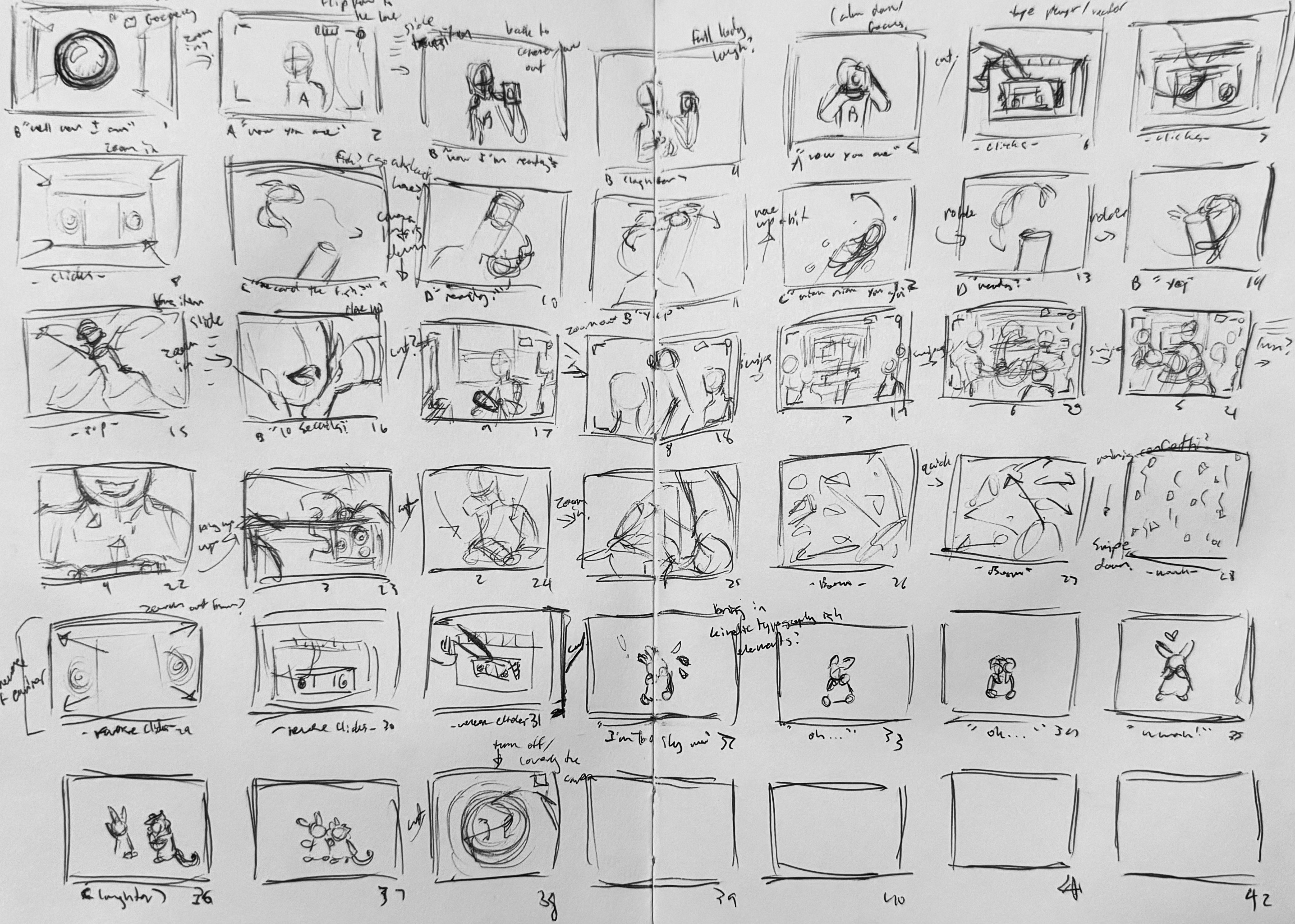 The story and intent of this piece is nostalgia for times long past. There is a very personal element to this animation which might make it a bit hard to connect with as the sound design for this animation is entirely sourced and complied from previous recordings. Nothing new was recorded for this which even further emphasizes the idea of the past that this animation aims to push forth. The visual style of this piece also supports this concept by being very minimal and sketchy in order to capture the moment as it is.